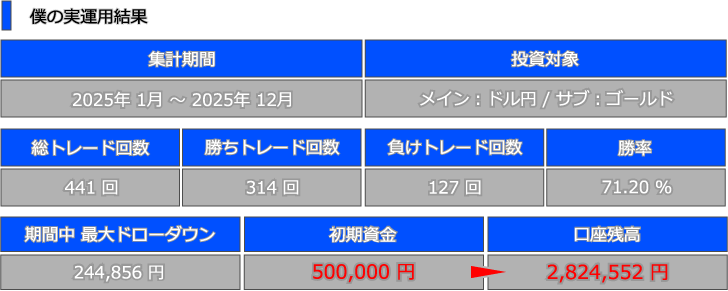 今回、僕のトレード戦略を皆様に公開するにあたって、直近1年間の実運用結果を集計してみました。