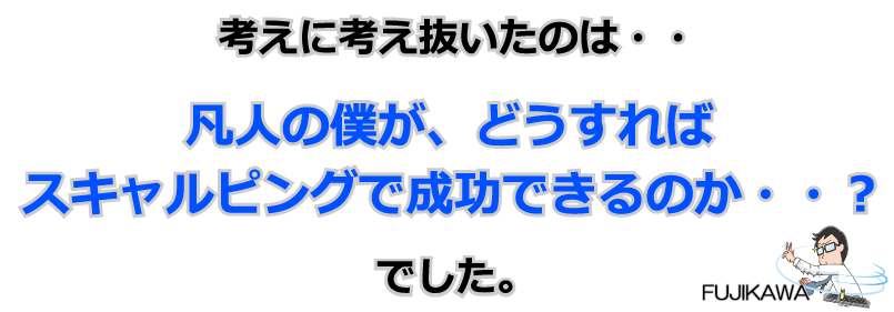 この「藤川式スキャルピング」は、諸先輩トレーダーの方々に数々のアドバイスをいただきながら、凡人の僕が、「どうすればスキャルピングで成功できるのか・・?」を考えに考え抜いた結果、構築されたトレード戦略です。