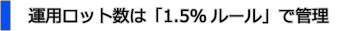 次に運用ロット数ですが、運用ロット数は「1.5%ルール」で管理しています。