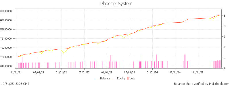 最後に本システム「Phoenix System(フェニックス システム)」のフォワード運用状況をご覧いただきました。 一足先に弊社では運用をスタートさせましたが、ここまで想定どおりの成績推移となっております。 上記の運用は、「Limit_Line」を「0.00」に設定した「不死鳥モード」での運用になります。 爆発力こそないものの、強制ロスカットリスク「0」の絶対的な安全圏での運用で、ここまでしっかりとした結果を出せるのは非常に稀なケースであり、本システムをおいて他には存在し得ないのではないかと思います。 長期間に渡り着実に利益を積み重ねている様は、トレード・運用というよりは、1つの「資産口座」を作るといった感覚に近いものがあります。 銀行預金等と比較にした場合、半端ない高利率であることは申し上げるまでもないかと思います。 さて、上記フォワード運用状況は、本システムを「TitanFX(タイタン エフエックス)社」で稼働させた場合の成績となります。 参考リンク: MT4が使える”勝てる”FX業者 参考リンク: TitanFX公式サイト 今回「Phoenix System(フェニックス システム)」では既存口座はもちろん、お好きなブローカーでご利用いただける「口座フリー版」と、「TitanFX社」にて弊社と同じ環境でご利用いただける「専用口座版」をご用意致しました。 お好みに応じてご選択いただければと思います。 なお「専用口座版」をご利用の場合は、「TitanFX社」に弊社経由のお取引口座をご開設(新規開設もしくは追加開設)いただく必要がございます。既存口座ではご利用できませんのであらかじめご了承下さい。 既に「TitanFX社」に弊社経由のお取引口座をお持ちの場合は、当該口座で「専用口座版」をご利用いただけます。ご不明な点がございましたらお気軽にお問合わせ下さい。 「TitanFX社」でのご利用をご検討の場合は低価格設定の「専用口座版」がお得です。 また「口座フリー版」をご検討の場合は、以下の要件を満たしたブローカーで本システムをご利用下さい。 それでは、本システムで「正攻法」でありながら、FXトレードにおける「裏技」とも呼ぶべき、絶対的な安全圏でのトレードをご体感下さい。 最後までお読みいただき、ありがとうございました。